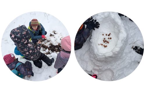 Zum Abschluss wurde den Eichhörnchen noch ein kleiner Futtervorrat mit Haselnüssen in einer gemeinsam gebauten Schneehöhle hinterlassen. So ging der erlebnisreiche Nachmittag fröhlich zu Ende und die Kinder freuen sich schon auf den nächsten Ausflug, wenn es am 1. März in die Ameisenstadt am Dellenhäule geht.
