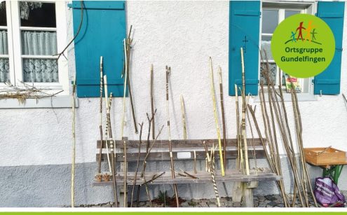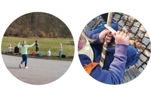 Am Freitagnachmittag, den 6. März 2026, fanden sich 15 Kinder und 5 Erwachsene am Vereinshaus des Schwäbischen Albvereins in Gundelfingen zu einem Schnitznachmittag ein. Bei bestem Frühlingswetter konnten wir den ganzen Nachmittag draußen sitzen und schnitzen. Doch von Anfang an: Zuerst gab es eine kurze Einführung in unser Werkzeug, das Messer. Wir besprachen den sicheren Umgang und die wichtigsten Schnitzregeln; dann ging es los. Mit viel Schaffenskraft und Kreativität entstanden unter anderem Wanderstöcke, Hasen, Flitzebögen und sogar Peitschen. Lauter Unikate, die in konzentrierter, aber entspannter Atmosphäre entstanden.