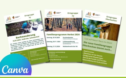 Außerdem bekommt Ihr einen kurzen Überblick über die wichtigsten Funktionen des Designprogramms „Canva“ – damit Ihr auch in Zukunft schnell und unkompliziert Flyer für Eure Familiengruppe gestalten könnt!